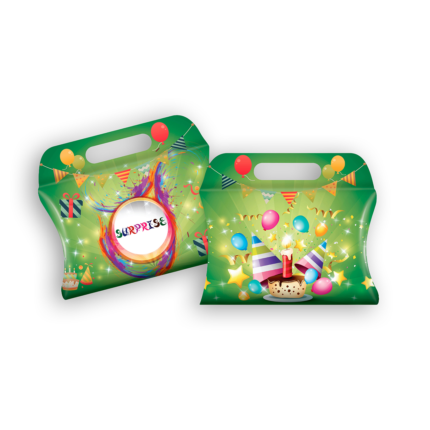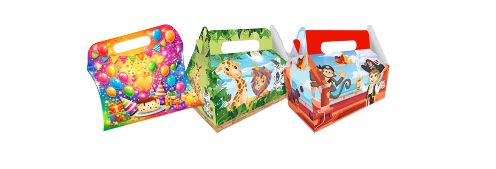 Nos pochettes surprises standards en carton sont munies de poignées pour une manipulation aisée. Leur design coloré et festif convient à tous les enfants et s’adapte facilement à l’ensemble des thèmes d’anniversaire.